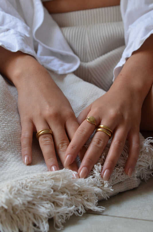 טבעת מפוסלת רחבה - זהב 14 קראט