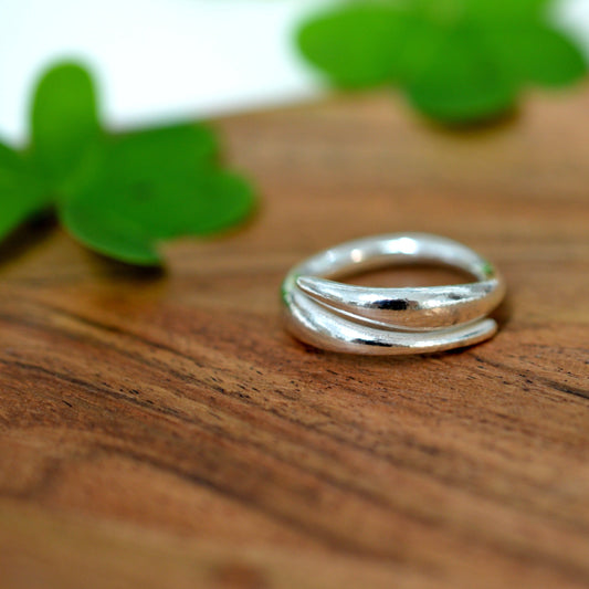 טבעת זהב מפוסלת כפולה - זהב 14 קראט
