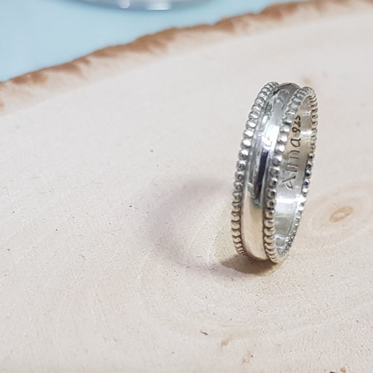 טבעת זהב או כסף לגבר - גשר עם חריטת גלים