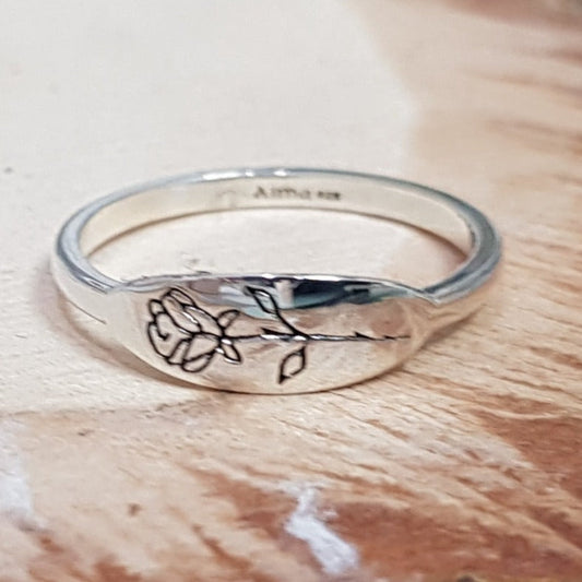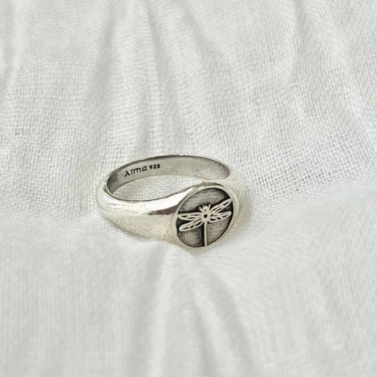 טבעת חותם עם חריטת שם מכסף - דגם לני