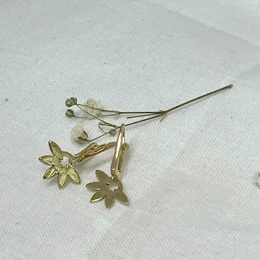 עגילים תלויים - פרח נרקיס - זהב 14 קראט