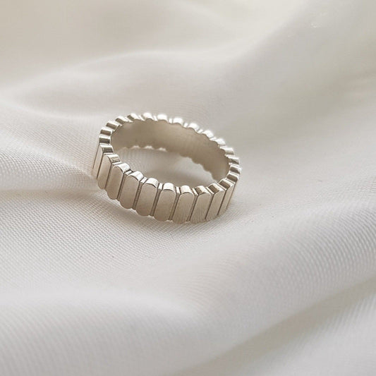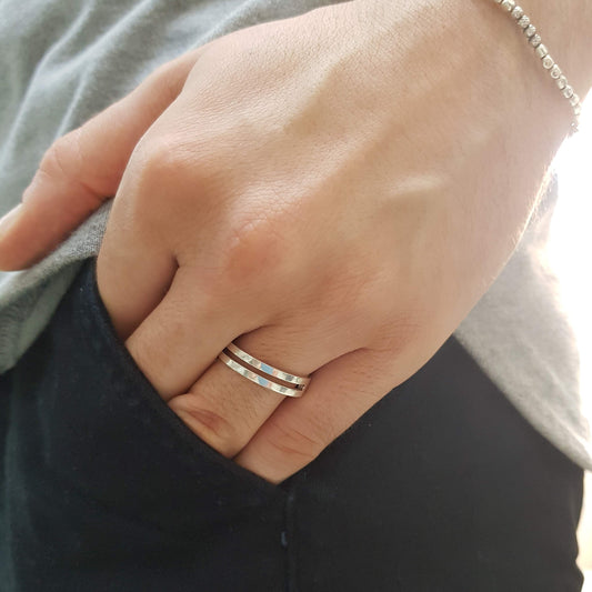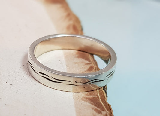 טבעת זהב או כסף לגבר - גשר עם חריטת גלים