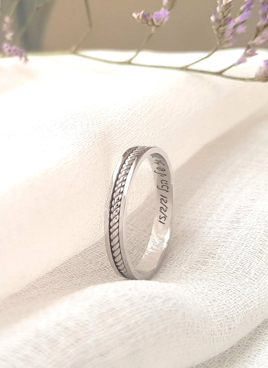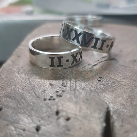 טבעת כסף עם חריטה של תאריך בספרות רומיות