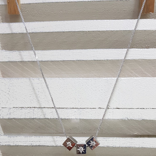 שרשרת ותליוני שמות זהב 14 קראט לבן ויהלומים