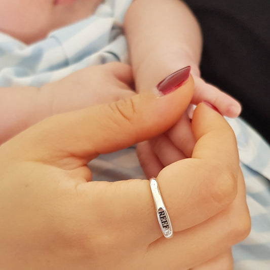 טבעת חותם עם חריטת שם מכסף - דגם לני