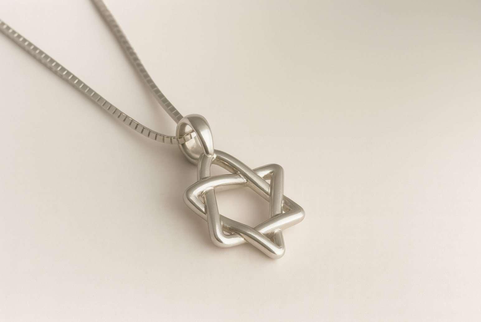 שרשרת כסף עדינה עם תליון מגן דוד בעיצוב תלת-מימדי
